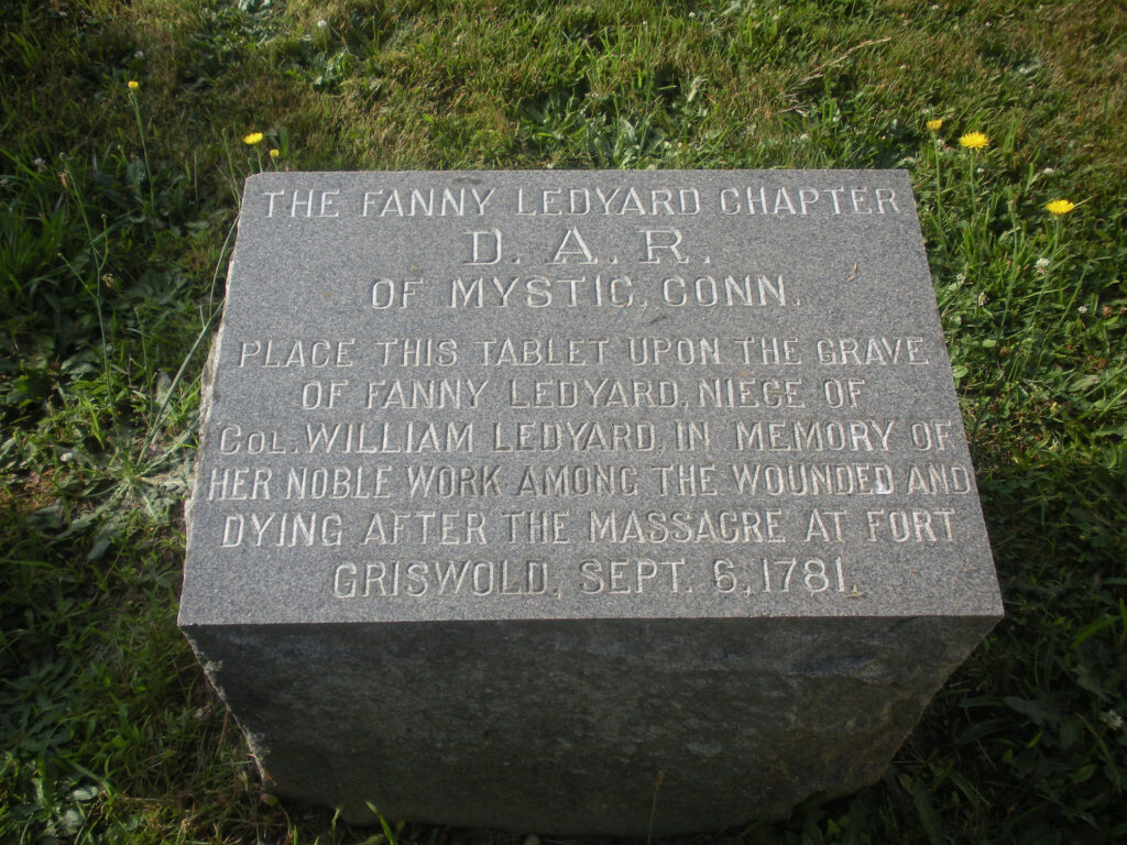 On a DAR tablet in Southold Cemetery is the following: “The Fanny Ledyard Chapter, DAR of Mustic, Connecticut, place this tablet upon the grave of Fanny, niece of Col. Wm. Ledyard, in memory of her noble work among the wounded and dying after the massacre at Fort Griswold , Sept. 6, 1781.